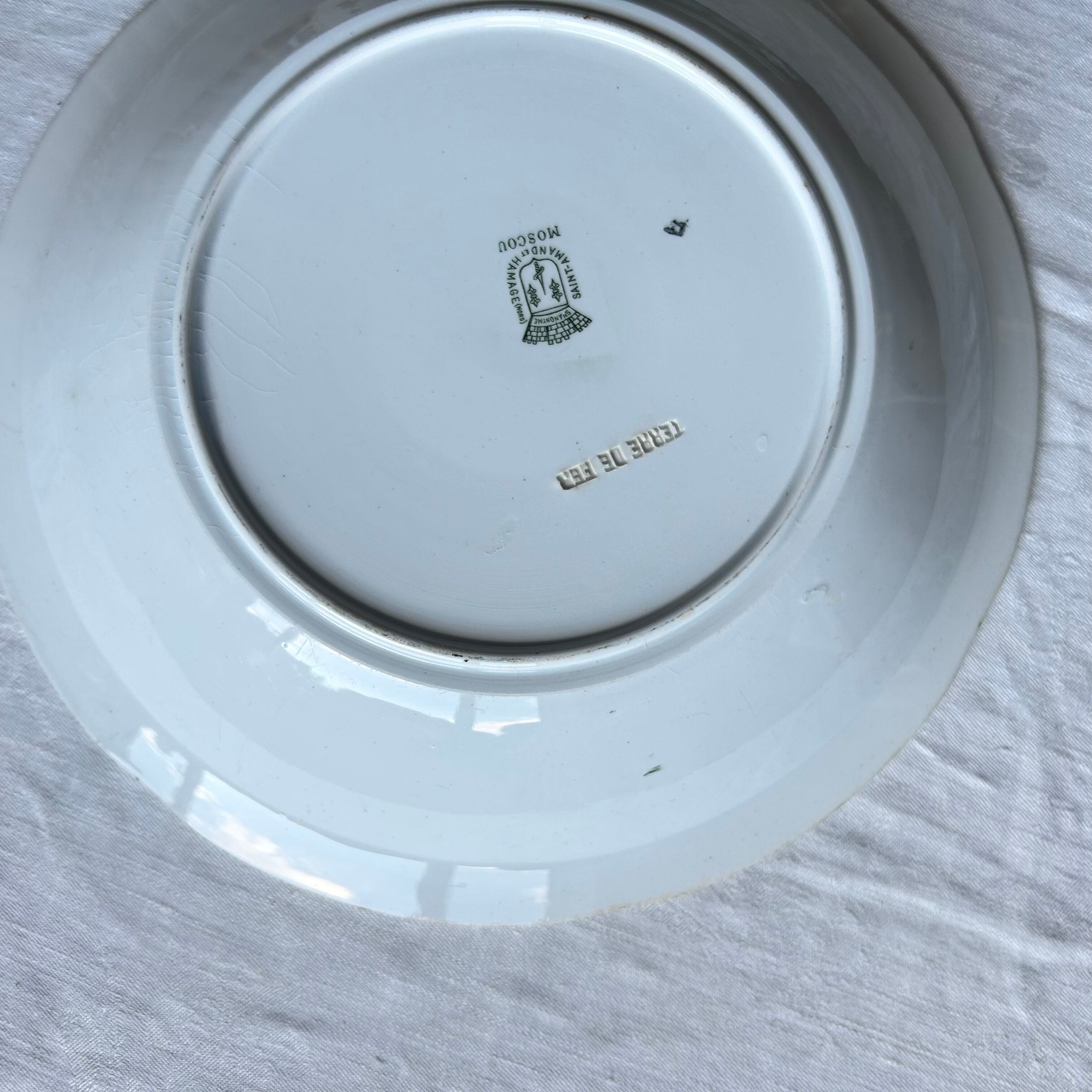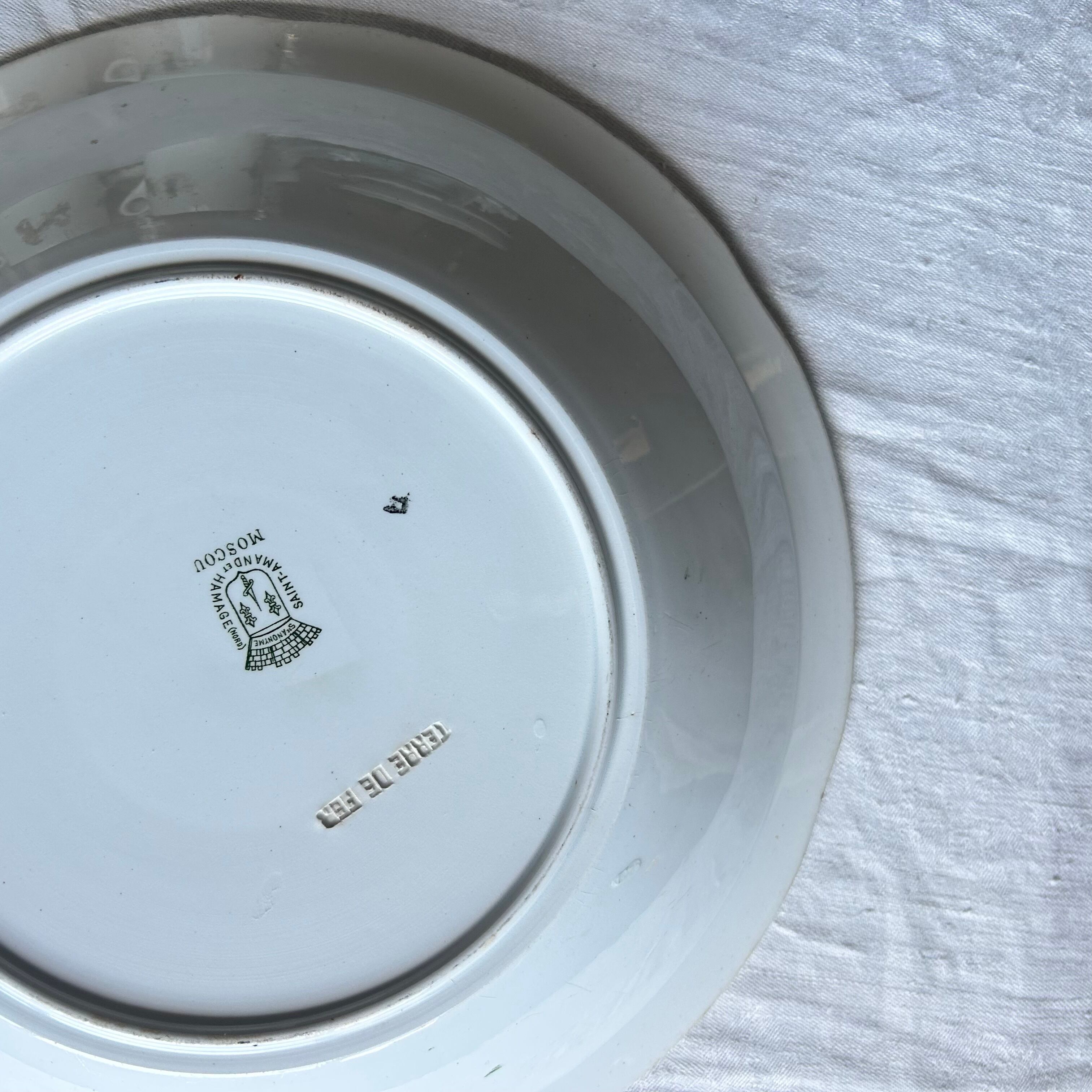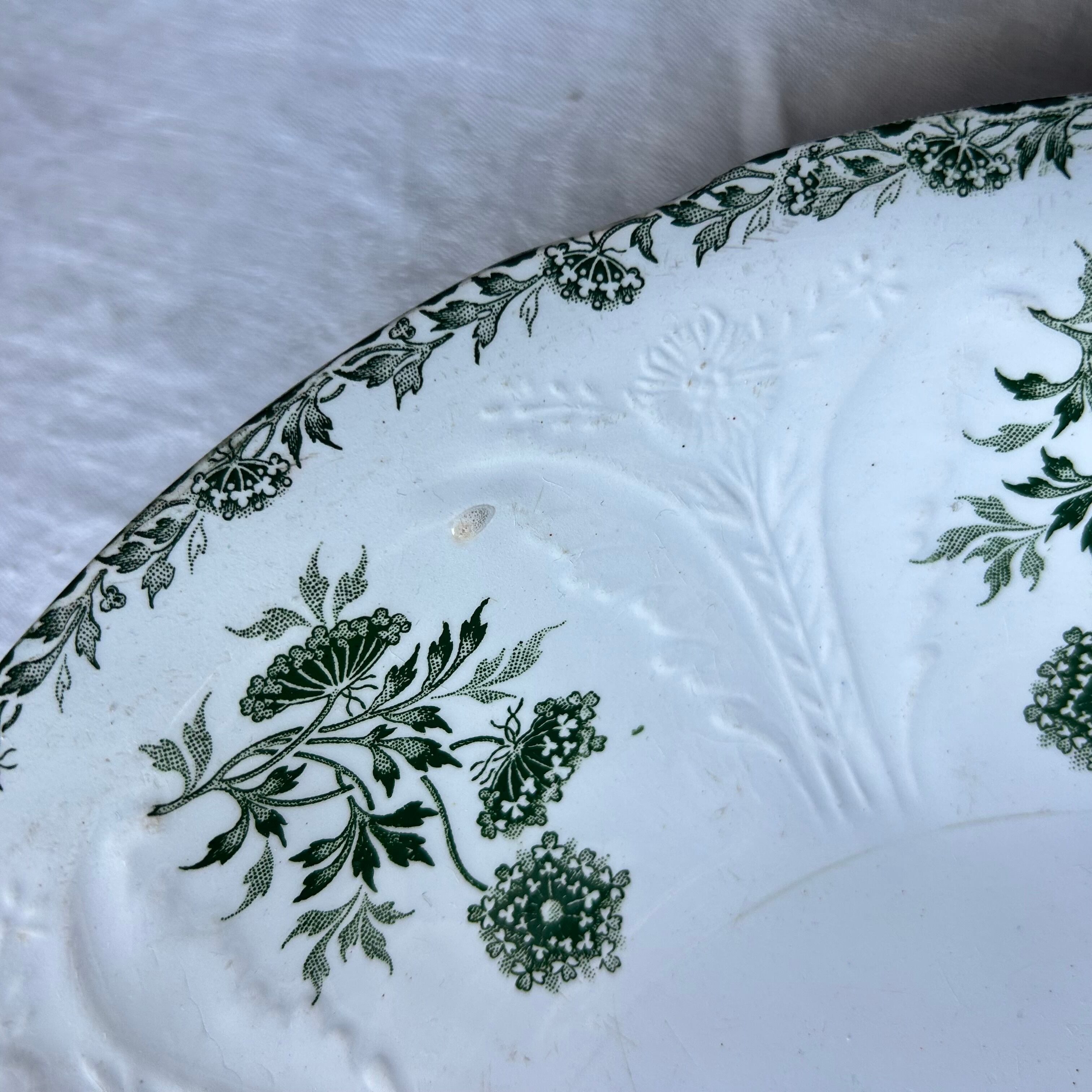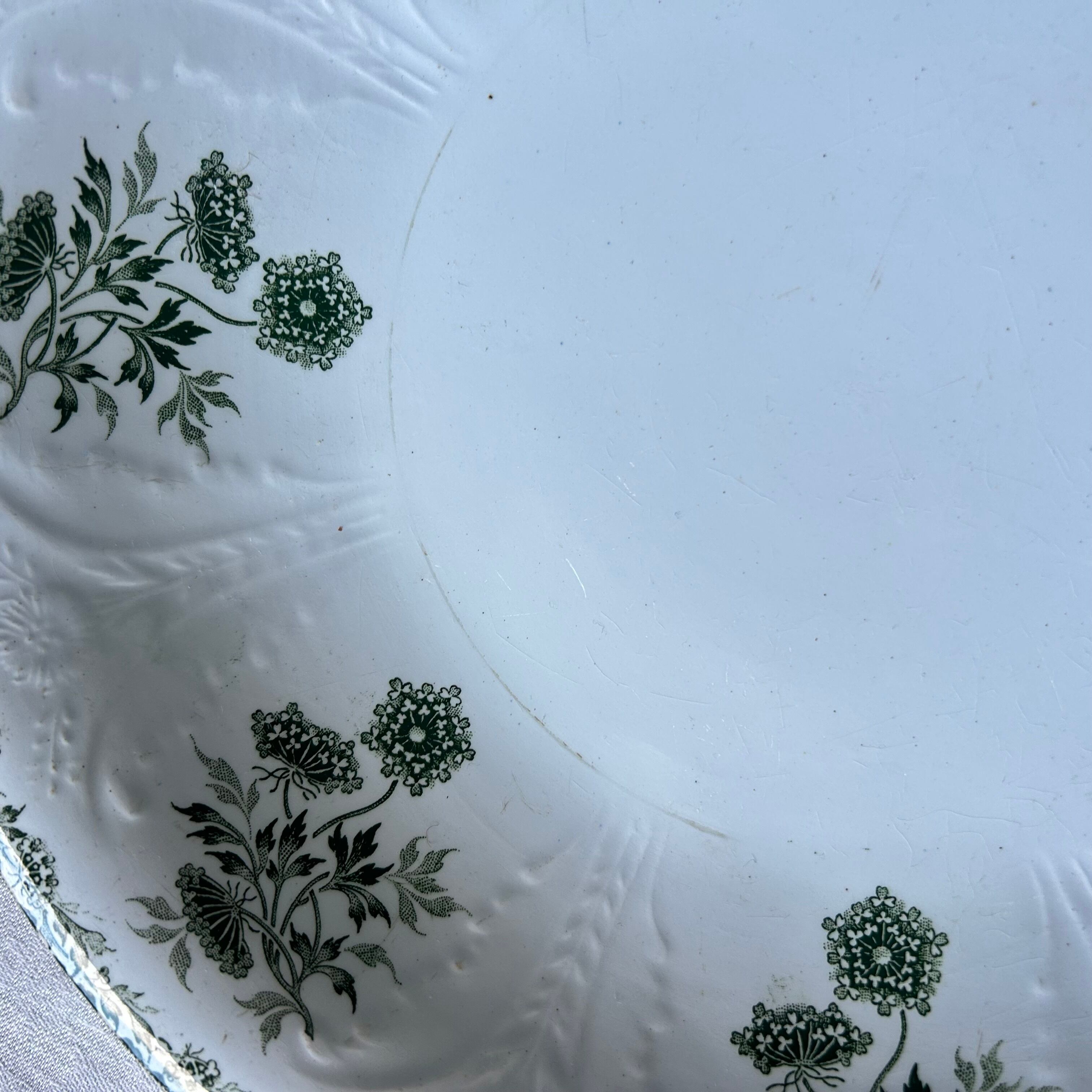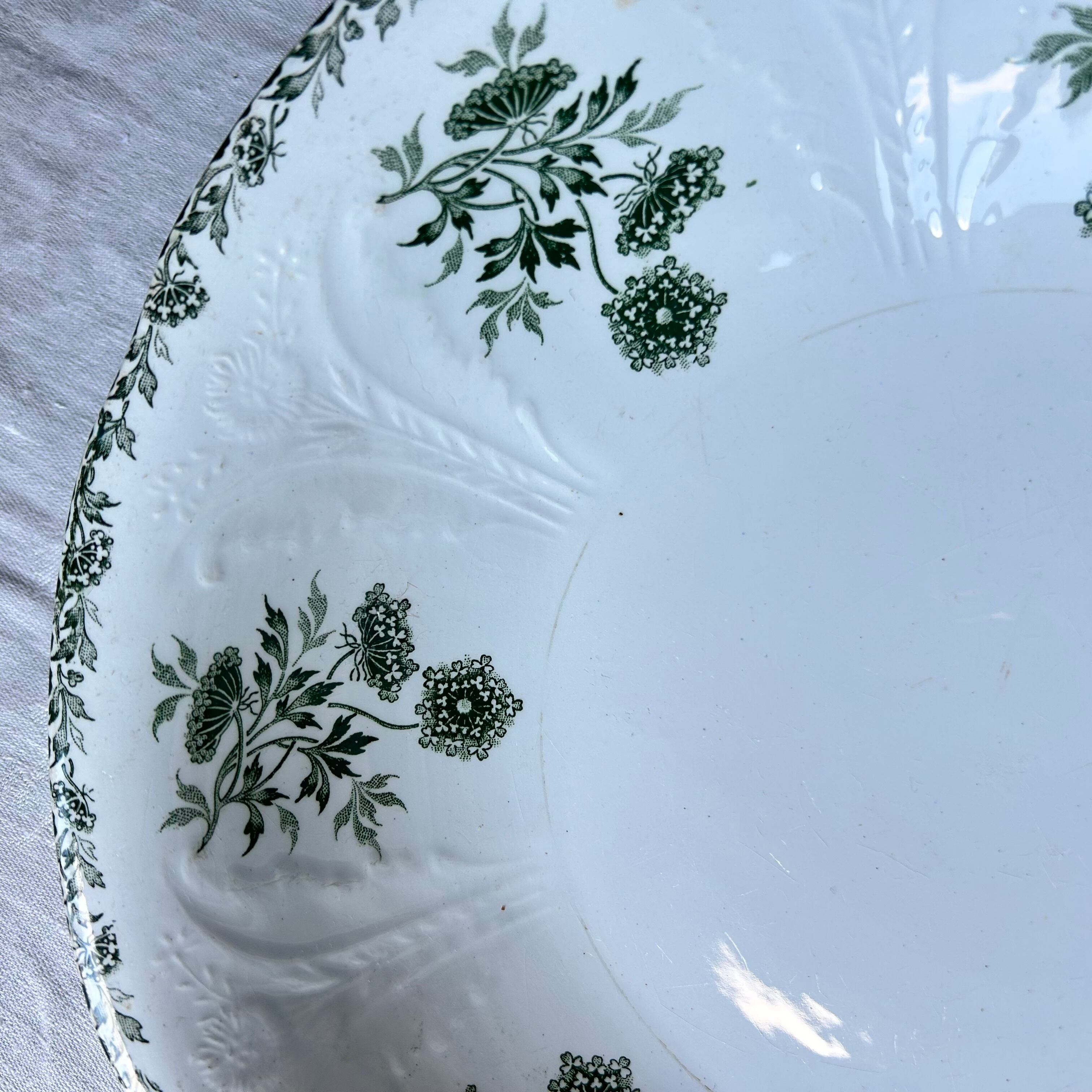 【大皿】サラダボウル Saint amand レリーフ モスグリーン フランス アンティーク
